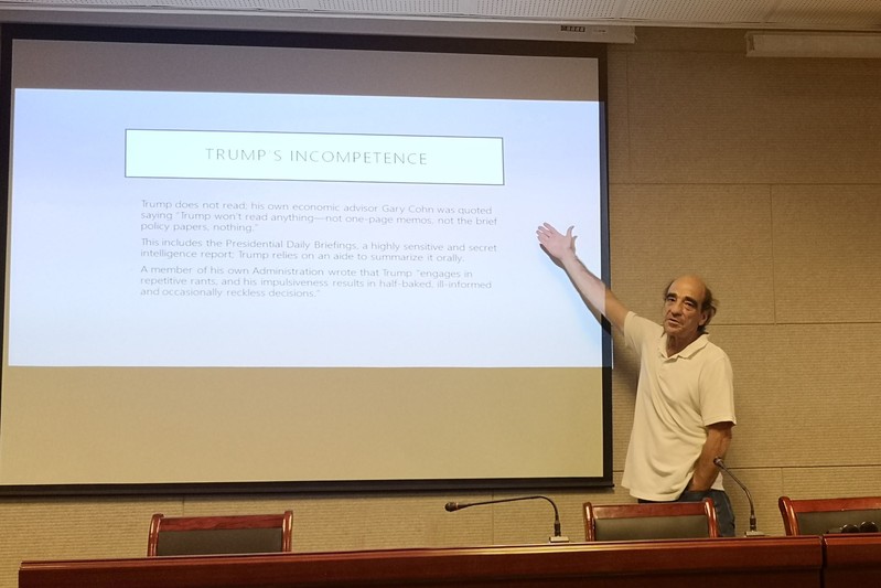 9月25日下午,美国代顿大学哲学系教授、芝加哥大学哲学博士Kurt Mosser教授做客唐文治书院,为书院同学带来了主题为“Is Donald Trump the Worst President in the History of the United States?”(特朗普是美国历史上最糟糕的总统吗?)的讲座。