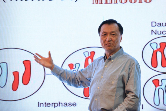 开场时,乔敏老师简要介绍了邬振国教授的身份与研究成果,表示对邬教授的热烈欢迎。跨越学科的藩篱,邬振国教授对讲演的顺序做了精心的编排,深入浅出,引人入胜。首先,他简明扼要地为同学们介绍了细胞与蛋白质,阐明了它们对于生命的重要性。邬振国教授表示,DNA经过复制得到单链RNA,RNA分子经过翻译再生成蛋白质。这是一个复杂而离奇的过程:非常简单的化学分子连在一起后却形成了生命。随后,邬振国教授对细胞的另外一个重要活动——细胞的分裂进行了讲解。他指出,细胞在完整复制自己的DNA后会进行分裂,这与生命的孕育密切相关,因为单细胞的分裂是所有生命的起点。此外,邬振国教授表明,细胞的减数分裂还与遗传疾病密切相关,会导致基因的隐性突变。
