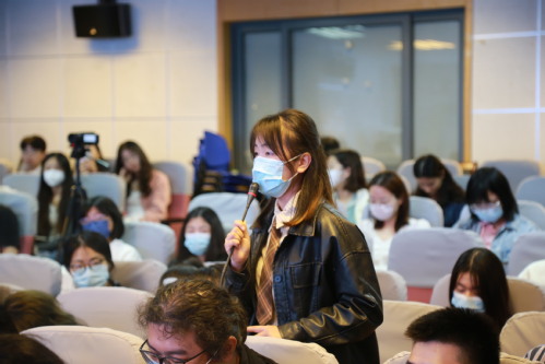 在戴燕教授讲解结束后,同学们就讲座内容踊跃提问,戴教授耐心解答并表达了对同学们的鼓励和支持。至此,此次讲座圆满落幕。