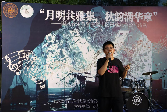 9月28日晚, “明月共雅集,秋韵满华章”——国风音乐节暨关爱山区困难儿童公益活动在苏州大学独墅湖校区二期文综楼对面停车场成功举办。本次活动由唐文治书院与文合爱心学社共同承办,唐文治书院全体师生参与。本次活动获得唐文治书院辅导员王磊老师的全力支持。