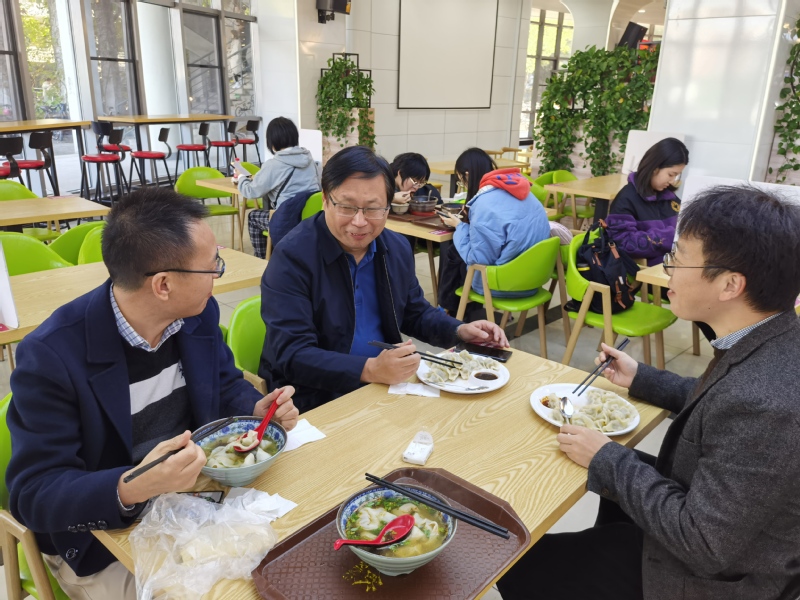 会后,周高总会计师还走访了唐文治书院学生宿舍,对同学们的学习生活表示亲切慰问,随后周总会计师在学生食堂跟师生共进午餐。