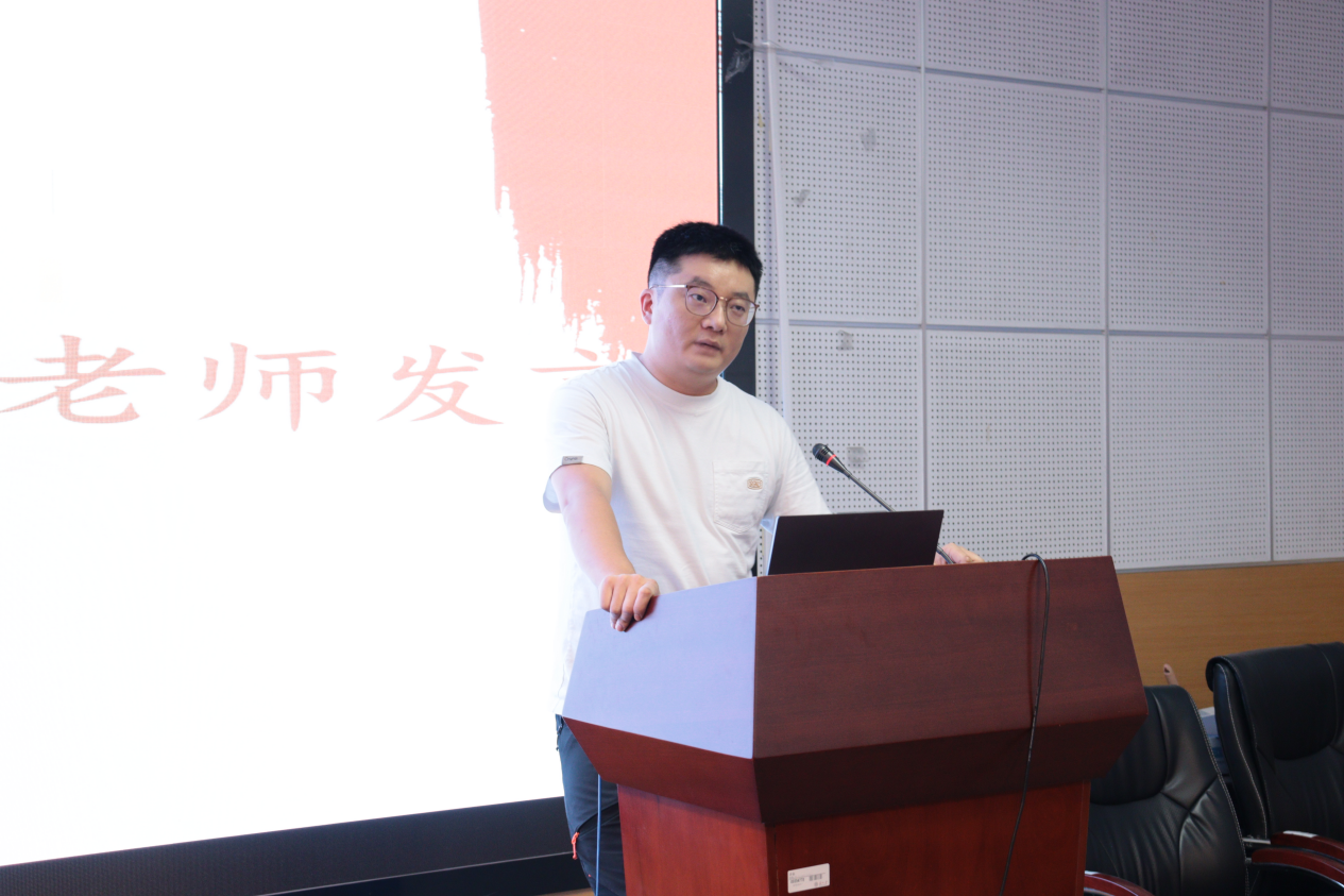 接着,唐文治书院2025级新生班主任邢益波老师上台致辞。他指出,勇气是新生开启书院学习生活的关键品质,并从三个维度阐释其内涵:其一是大胆尝试的勇气,探索多元化的成长路径;其二是正视失败的勇气,把握挫折背后蕴含的契机;其三是“六经注我”的勇气,充分利用书院提供的广阔学习平台和丰富优质的资源,持续提升自我修养。