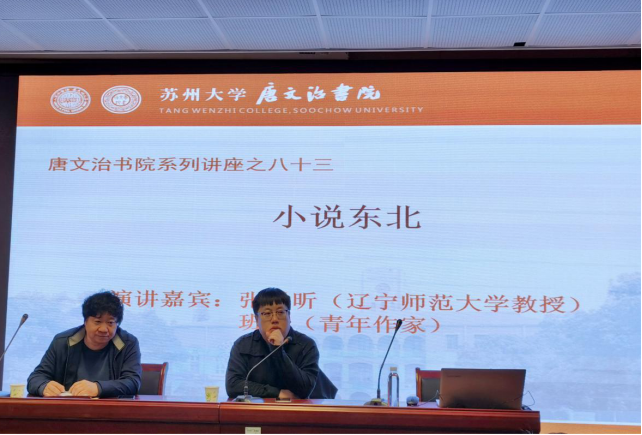 11月19日晚,辽宁师范大学文学院教授、批判家张学昕先生和著名青年作家班宇先生做客唐文治书院,为书院学子带来了题为“小说东北”的讲座。
