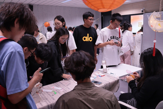 下午5时30分,活动正式拉开帷幕。现场设置漆扇、投壶、灯笼制作、灯谜四大主题摊位。各摊位围绕中华优秀传统文化这一主题展开。漆扇摊位处,漆扇承载着同学们对非遗技艺的热爱,同学们在观赏精美漆扇展品、亲身体验漆艺制作的过程中,近距离感受非遗技艺的匠心巧思与独特韵味;投壶摊位处,这一起源于春秋战国时期的传统礼仪活动深受欢迎。同学们有序排队,踊跃参与,在投壶瞄准的互动中体悟古代礼仪文化的生动内涵;灯笼制作摊位处,同学们亲手组装小兔灯,穿线、固定、装饰,将中秋的团圆祝福融入每一处细节,一盏盏精致的小兔灯营造出浓厚的节日氛围;灯谜摊位处,趣味谜面与传统文化知识巧妙结合,从中秋习俗到经典诗词,同学们在思索与抢答中揭晓谜底,在会心一笑间深化对中华传统文化深厚底蕴的认知。