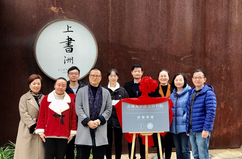12月8日上午,苏州大学唐文治书院研修基地正式落户苏州上书洲书院,唐文治书院常务副院长季进老师、上书洲书院创始人袁卫东、著名作家葛芳、唐文治书院胡月华老师、李明铭老师、史悠老师及部分学生代表参加了揭牌仪式。
