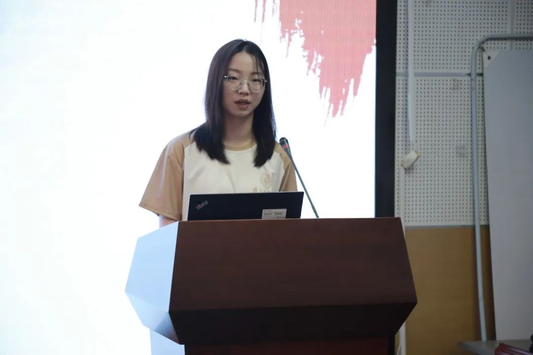 接下来,高乐同学作为唐文治书院优秀学生代表发言。她结合自身经历,给新生们分享在书院学习生活的感受与心路历程,并提出了许多真诚的建议。她鼓励同学们把握好当下,养成独立思考的能力,在不断的学习与阅读中成长为勇敢坚定的人文学子。