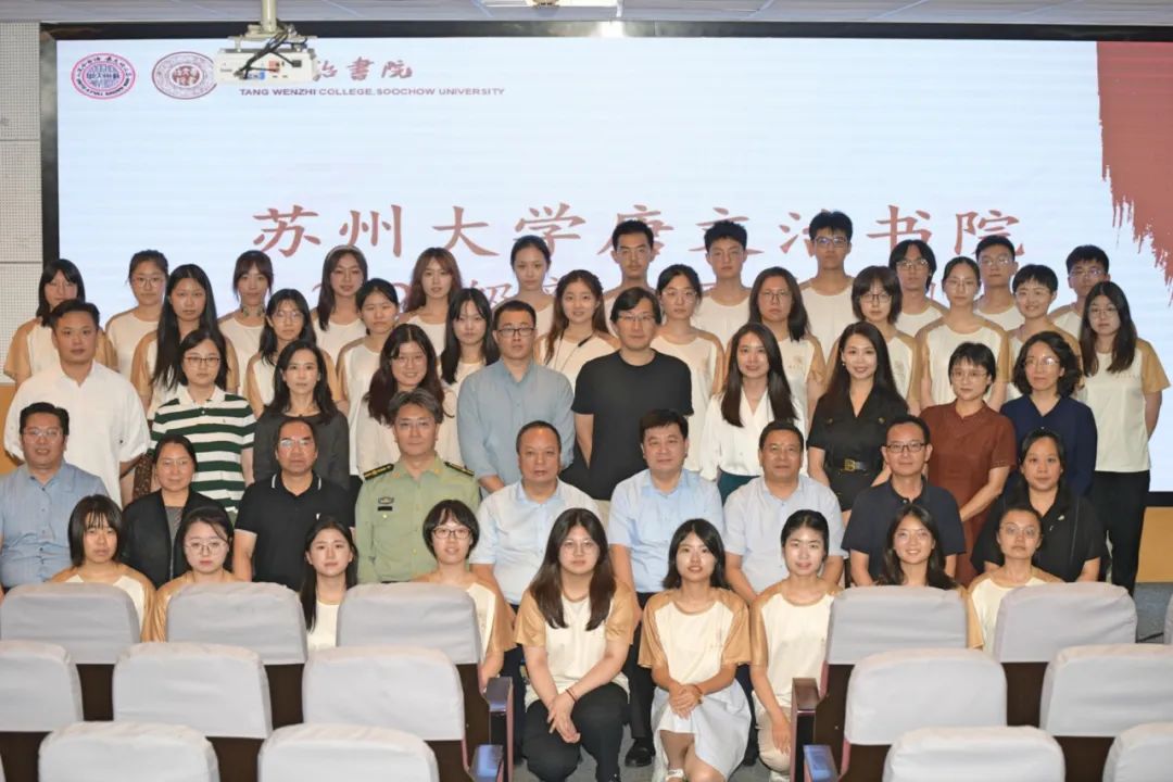 913日下午,唐文治书院2023级新生开学典礼在1005-5339会议厅隆重举行。出席本次典礼的领导嘉宾有:苏州大学党委常委、副校长姚建林老师,校学生工作部董召勤老师,校教务处处长方亮老师,文学院、唐文治书院院长曹炜老师,社会学院院长、唐文治书院副院长高峰老师,文学院党委书记宋清华老师,唐文治书院常务副院长季进老师,文学院、唐文治书院党委副书记阴浩老师以及社会学院党委副书记朱今老师。同时,导师代表们也亲莅开学典礼现场,他们分别是:车玉玲老师、顾迁老师、姜晓老师、李一老师、王吉老师、张程娟老师和张珊老师。