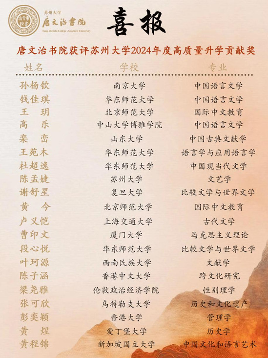 这一荣誉的取得,不仅是对唐文治书院全体师生辛勤付出、不懈努力的高度肯定,也得益于各级领导的悉心关怀和兄弟院系的大力支持。展望2025年,我院将继续秉持“尊德性而道问学,致广大而尽精微”的院训,砥砺前行,勇攀高峰,力求创造更为辉煌的成就!