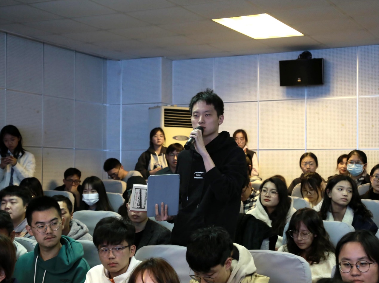 陈教授的精彩讲解结束后,同学们就讲座内容积极与陈教授展开交流,并提出了“在高等教育的发展与变局中,人文社科类的学生如何走好自己的路”“审美教育对塑造人性的作用有几何”等问题。陈教授结合自身经历,又旁征博引,为同学们解答困惑。至此,本次讲座圆满结束。