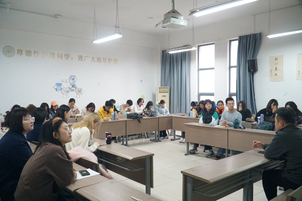 对同学们抛出的种种困惑,季进老师和张珊老师逐一给出了详细的答复。在生活上,季进老师提倡同学们在大一要适度参与社团活动,体验丰富多彩的大学生活;在学业上,季进老师针对同学们在撰写论文时遇到的困难,提出要结合教材和相关研究素材不断拓宽自己的学术视野。此外,他还指出,计算机对文科生的逻辑思维能力提出了一定的要求,他希望同学们多花时间与精力在这些课程上,以免影响后期学业的推进。接着,张珊老师指出,同学们要做学习上的“有心人”,记录下老师上课时推荐阅读的书籍与论文,并在此基础上积极深挖相关学术领域的研究成果。同时,她还希望同学们品读经典著作,不断汲取新知识,涉足新领域,充实自己四年的大学生活。
