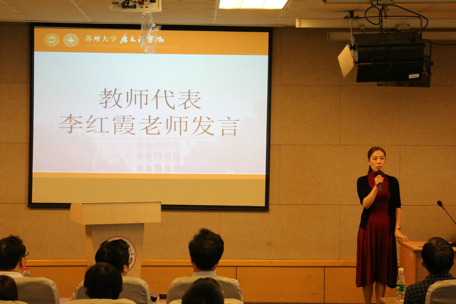 2018年6月6日下午15时,苏州大学唐文治书院2018届本科生毕业典礼在苏州大学独墅湖校区1005-5339学术报告厅隆重举行,唐文治书院院长王尧老师、社会学院党委书记邓国林老师、唐文治书院常务副院长季进老师、文学院主持工作副院长汪卫东老师、文学院党委副书记、副院长阴浩老师、文学院副院长束霞平老师、社会学院党委副书记包军老师以及书院导师赵杏根老师、邢冬梅老师、刘祥安老师、车玉玲老师、朱建刚老师、张玲老师、张珊老师、顾迁老师、李一老师、李红霞老师和书院辅导员胡月华老师、李明铭老师出席典礼。