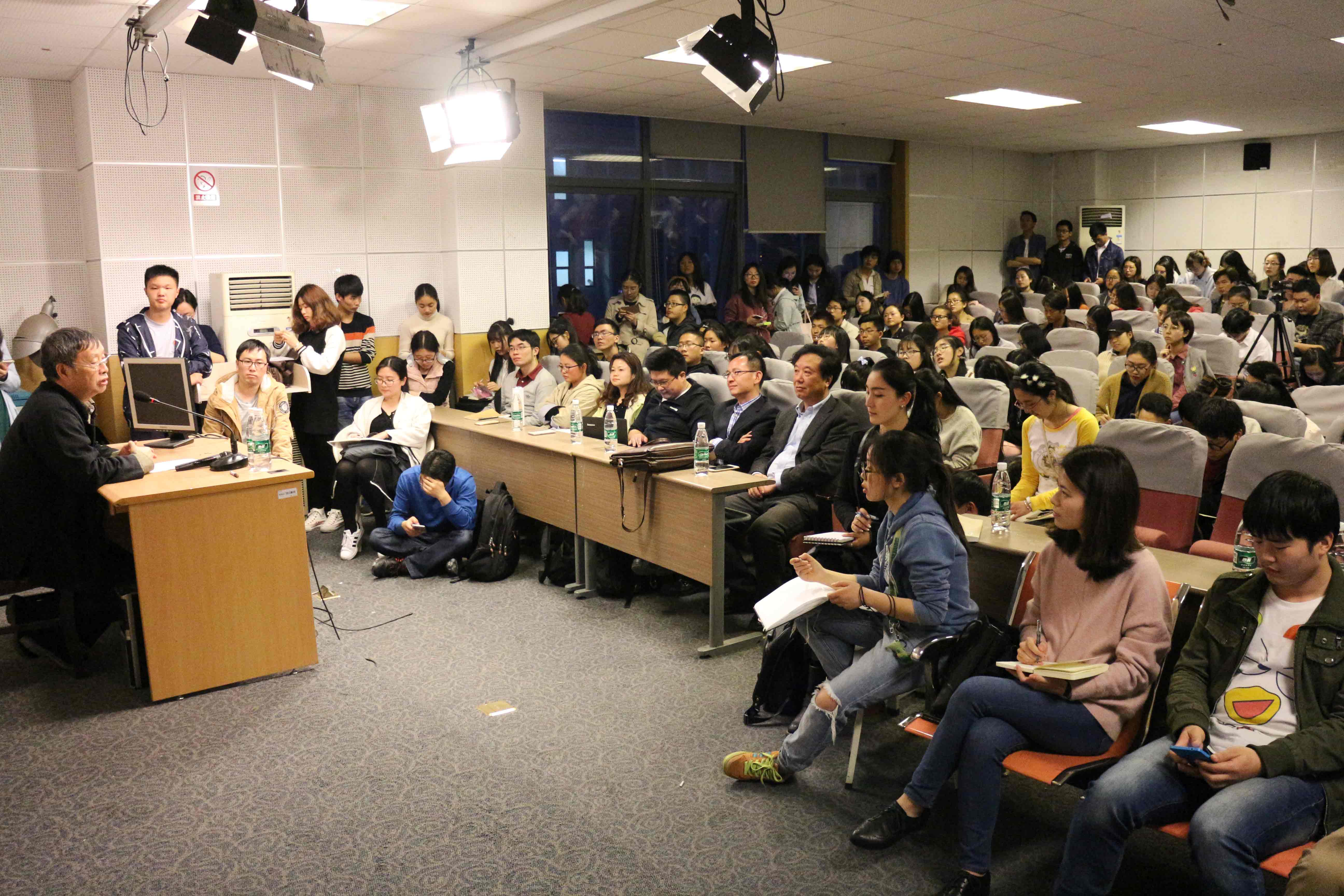 在随后的学生提问环节中,有关文学的角色问题,少功老师坦言问题的复杂性,但还是给出他的基本观点,文学应是社会发展的参与者,同时承认知识的局限性,应加强文理互动。他也表达了对如今科幻作品认识肤浅的失望,未触及最根本的价值问题。还有人问及科技时代能否产生优秀的长诗作品,少功老师给出了自己的认识,并透露了北岛的最新长诗作品。