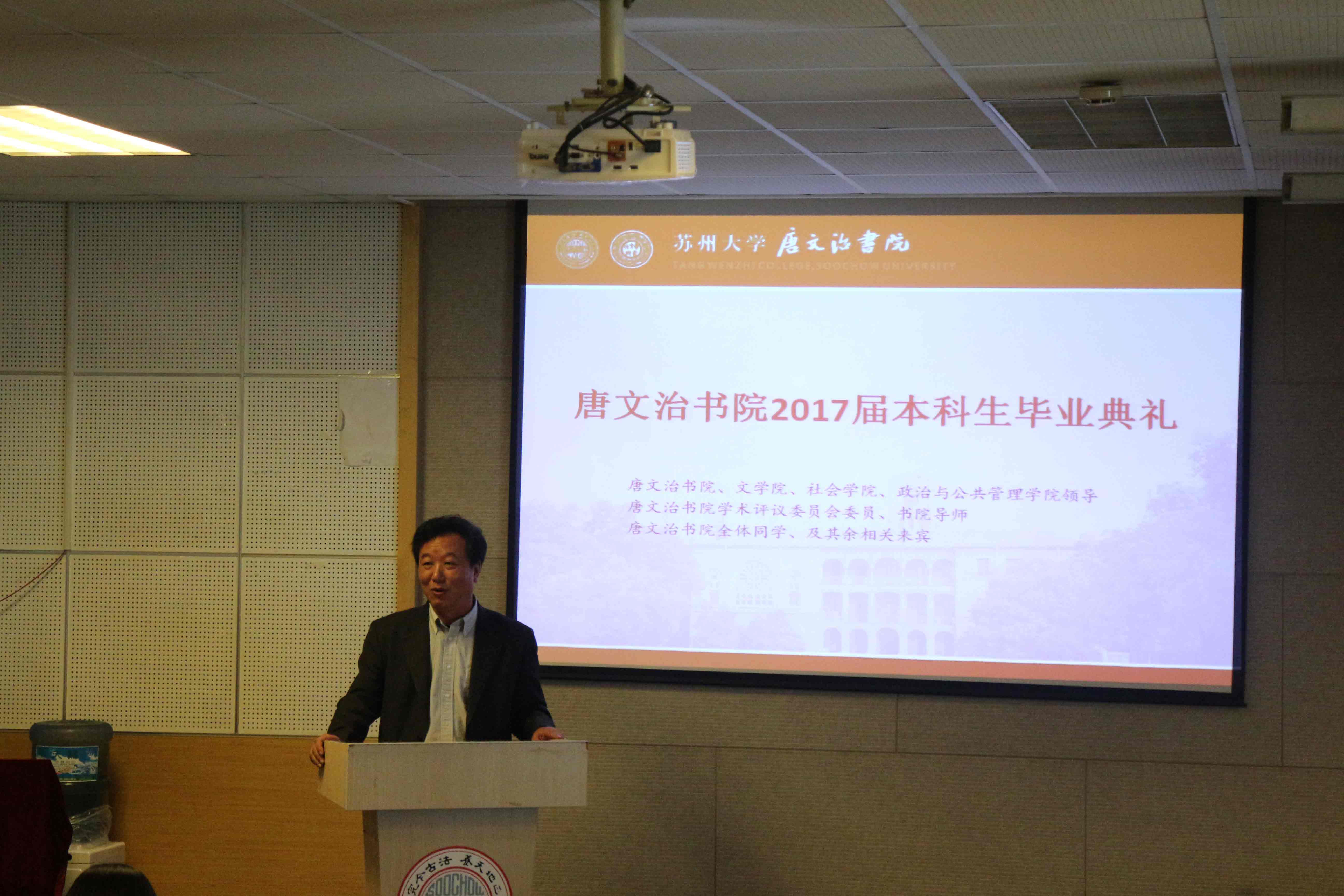 唐文治书院院长王尧首先致辞。作为唐文治书院的创办者和命名者,王尧院长对唐文治书院有着深厚的感情。他回忆了书院成立的初衷和书院四年来的发展成长历程,同时也对17届毕业生表示祝贺,祝愿他们有一个更加美好的明天。正所谓前路虽长,尤可期许。