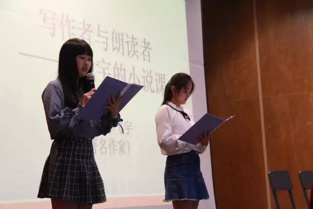 在第二环节中,来自唐文治书院的同学们,朗诵了毕飞宇小说作品中的《苏北少年堂吉诃德》、《青衣》、《推拿》、《玉秀》、《哺乳期的女人》片段。用声音的方式,将文字展现在大家面前。