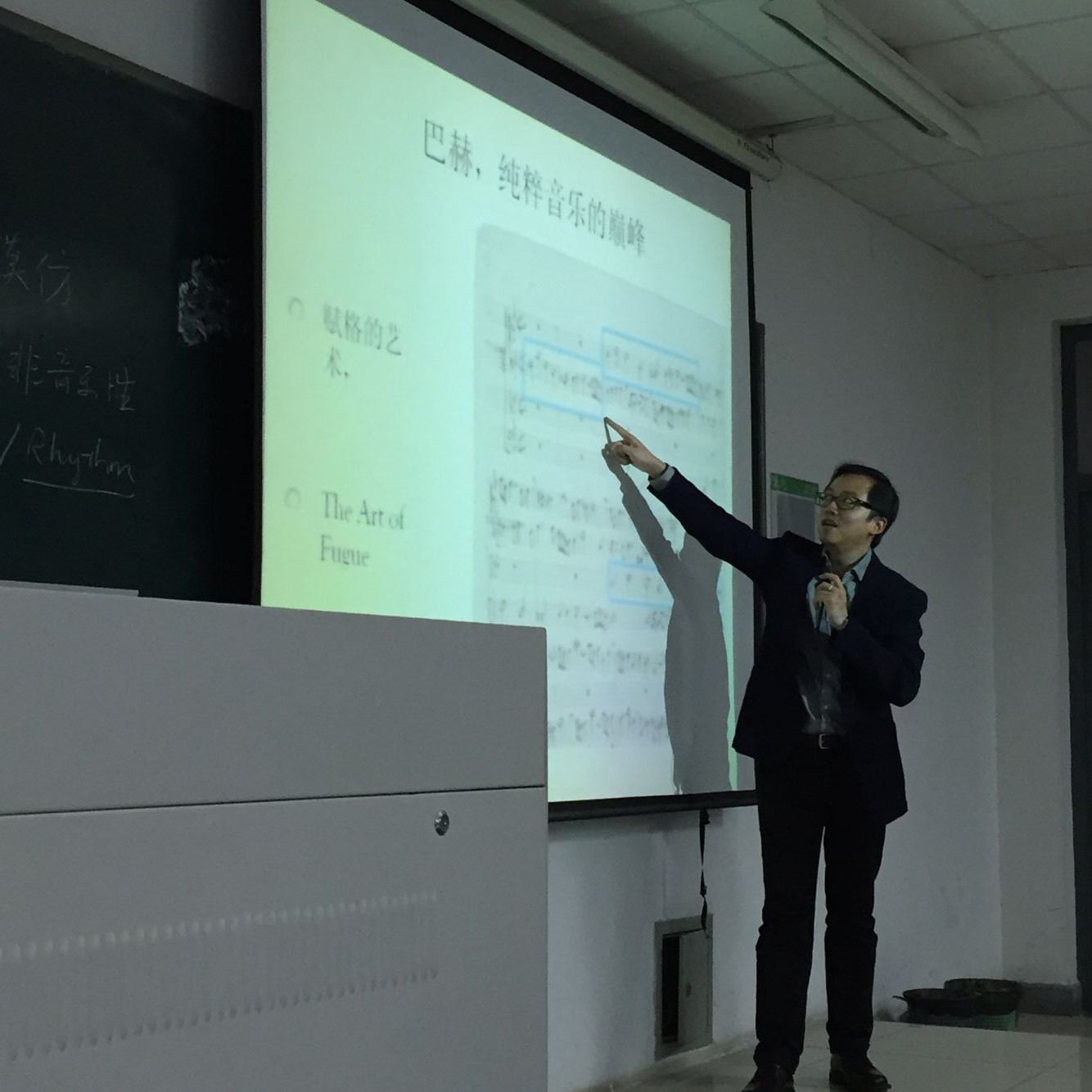 接下来,陈广琛老师用《拉奥孔:论画与诗之界限》当中拉奥孔与两个儿子将死之前的状态来论述文字表现的是一个过程,而绘画则表现的是一个切面,尤其侧重与在某一事件发生之前的截面。史怀泽先生在《论巴赫》当中认为,巴赫是用音乐来表现文字,音乐和文字从同一灵感当中产生。由此,陈广琛老师发问:是否存在纯粹的音乐?什么是纯粹的音乐?同学们踊跃回答,从情绪与声音,心中是否有杂念,目的与功能,音乐性与非音乐性等方面做出解释。
