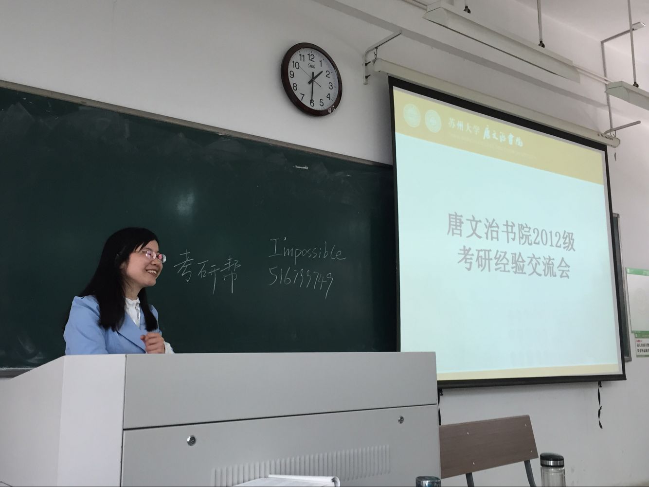 最后主持人对此次考研宣讲会做了简短的总结,祝愿大家坚持在学习的道路上走出一片属于自己的锦绣天地,至此,记唐文治书院2012级考研经验交流会圆满落下帷幕。