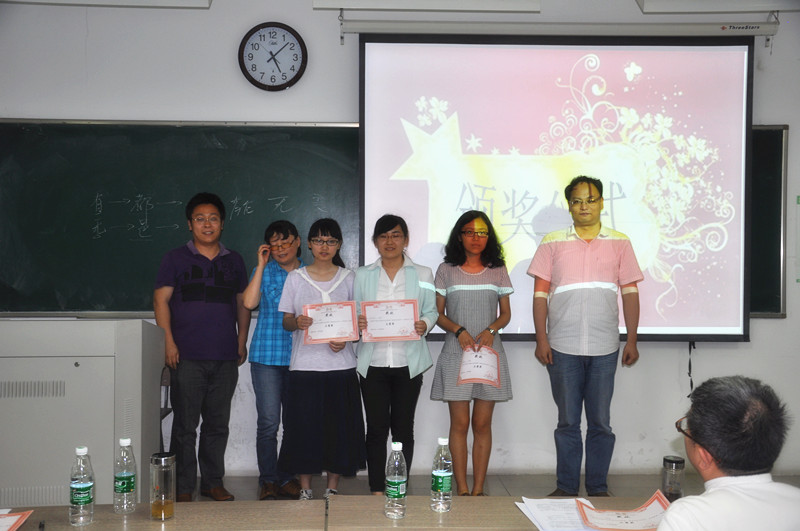 在评委们对各位选手的报告作出了客观的打分后,17点整,唐文治书院第一届读书会颁奖典礼举行。主持人宣布获奖名单,获得三等奖的是2013级章慧慧、2013级杨安然和2012级刘家凯三位同学;获得二等奖的是2012级冯思远与2013级潘伟峰两位同学;获得一等奖的是2012级杨潇潇、2012级李子皿和2012级卢一凡团队。最后评委老师们给获奖选手颁奖并合影留念。在热烈的掌声中,唐文治书院第一届读书会圆满落幕。