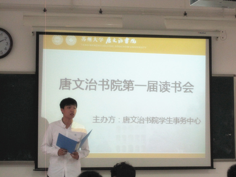 首先,主持人介绍了到场的评委老师,并宣读了此次读书会的评分细则,随后宣布苏州大学唐文治书院第一届读书会正式开始。比赛在2303和2304教室同时进行。