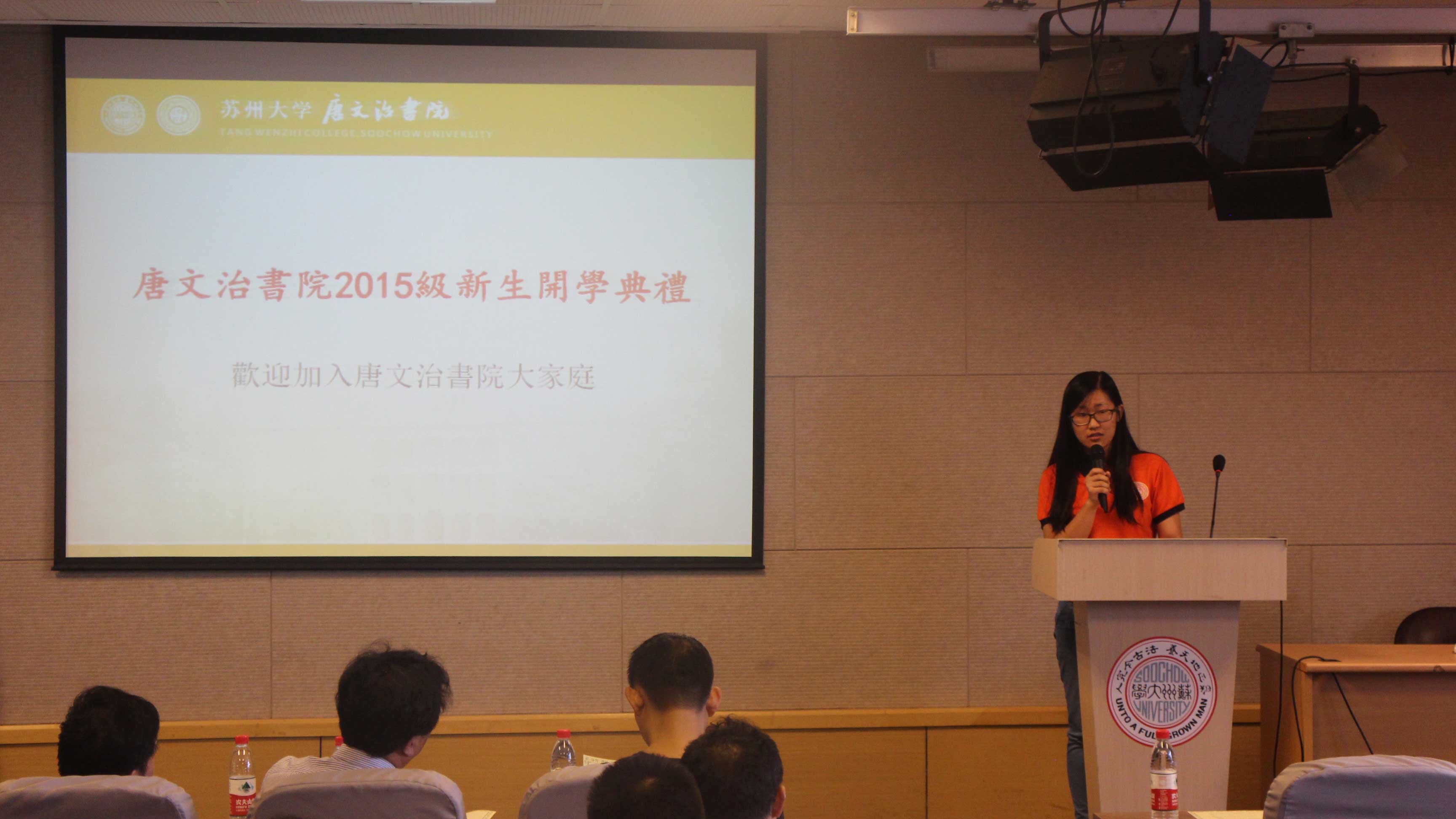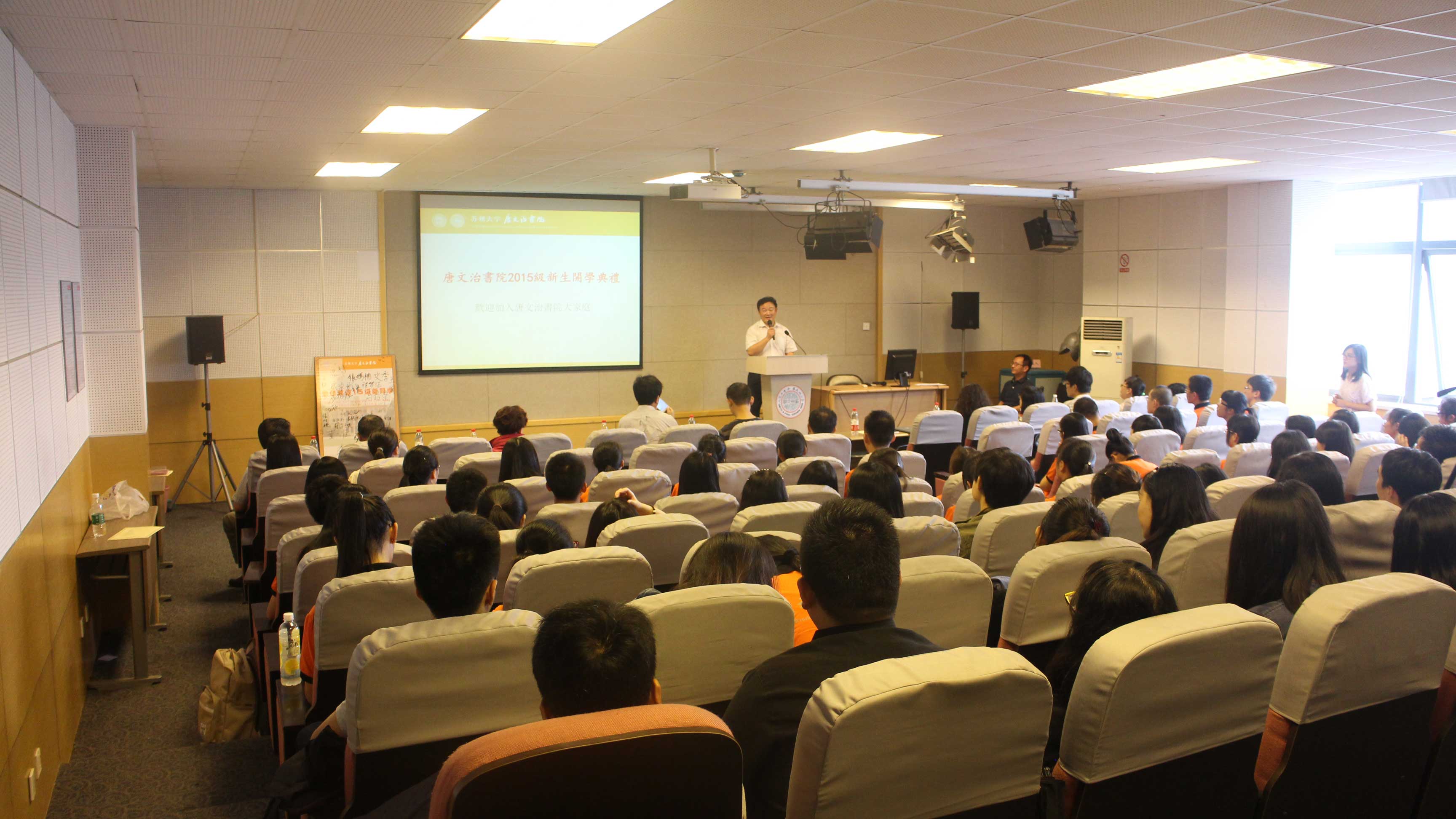 2015年9月15下午,苏州大学唐文治书院于1005-5339报告厅召开了2015级新生开学典礼。苏州大学副校长袁银男,唐文治书院院长王尧、副院长季进,文学院、社会学院和管理学院的领导,书院导师以及唐文治书院全体学生参加了本次典礼。