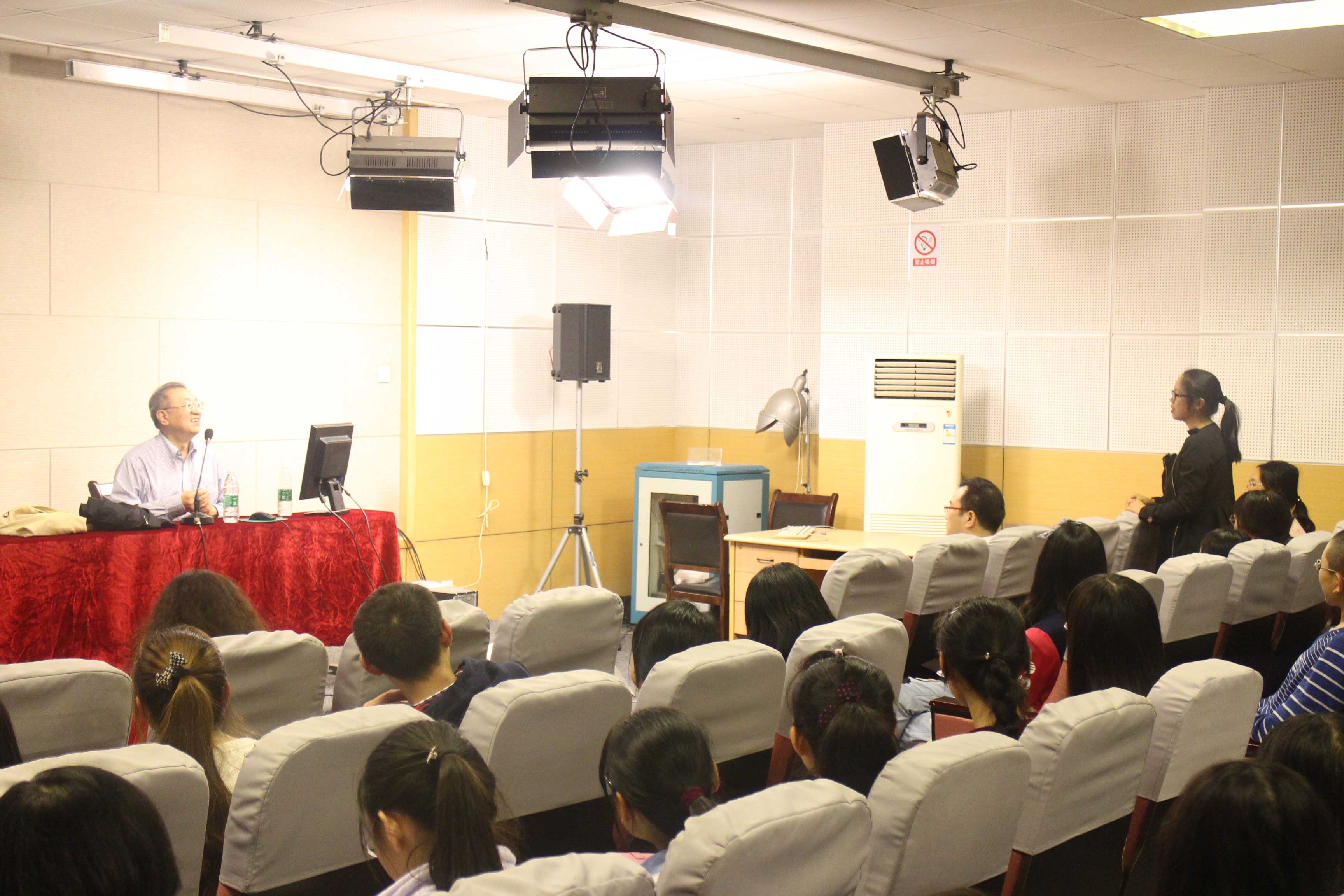 接着,郑教授向同学们分享了他在书法方面的一些体会。他坚信写书法需要有“气”,需要有“韵”,“气”“韵”兼备才能写出真正的好书法。同时他相信书法本身就是乐趣,而在写书法的过程中,人做到心身愉悦从而有心理治疗的效果。一番言论使得在场的同学们极大的加深了对于书法的理解,拓展了同学们看待书法艺术的视角。在谈论书法的整个过程中,郑教授时而激昂、时而幽默,使得整个讲座生动异常。郑教授十分谦虚,他反复提到“我只是个写字的人”,然而其对于书法和古诗词的热爱和这样谦虚的态度不得不让人更加尊敬,这也让在场的同学无不为之深深的佩服。