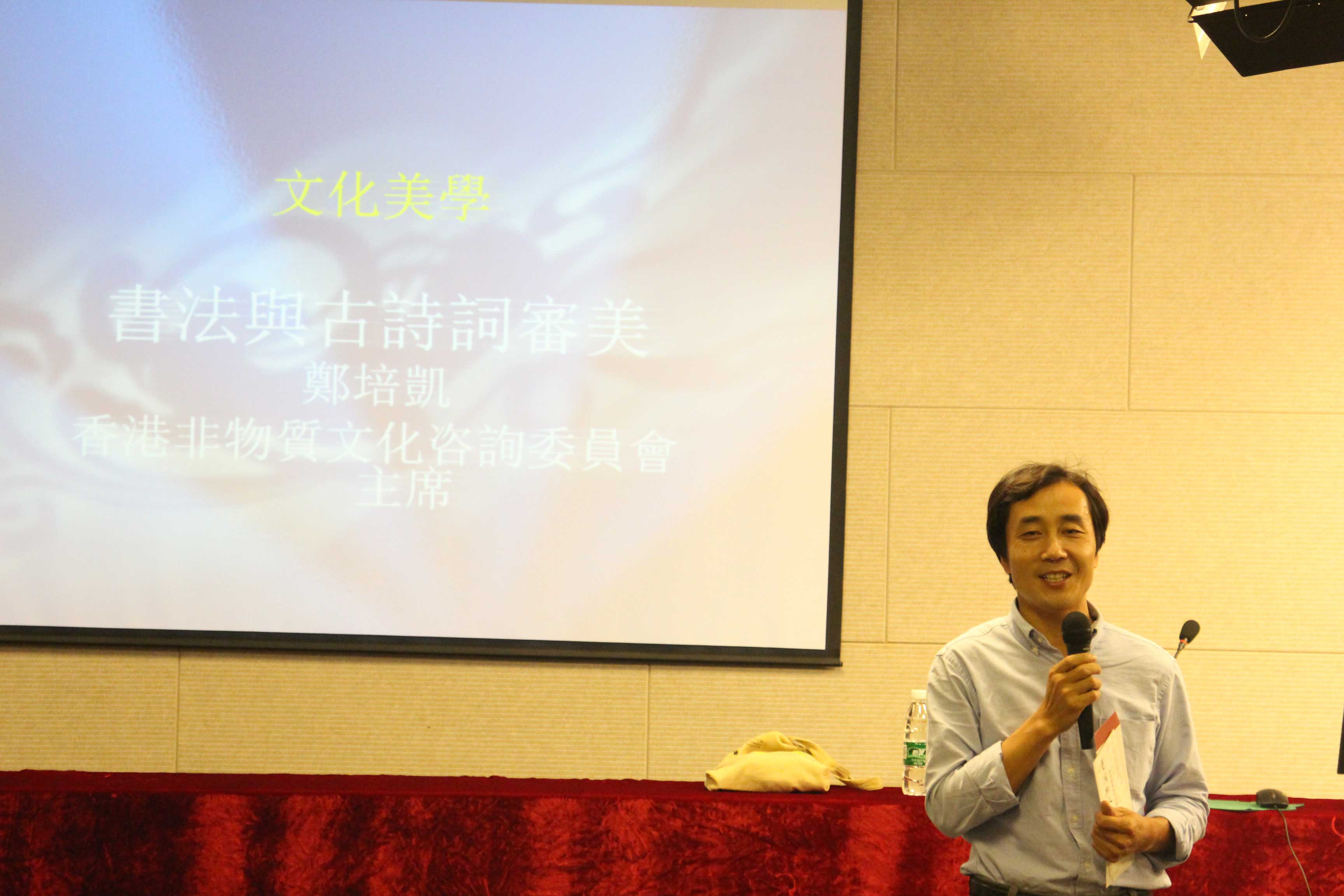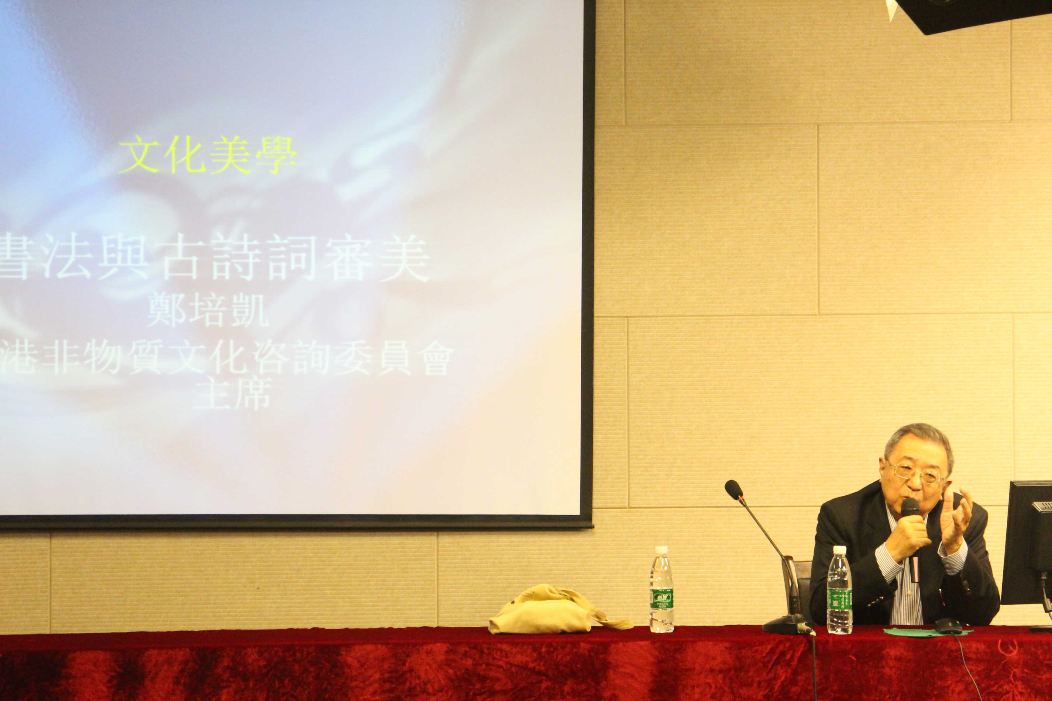 2015年10月15日晚6:30,唐文治书院系列讲座之十九在苏州大学独墅湖校区1005-5339举行。本次讲座由香港大学教授、香港非物质文化遗产咨询委员会主席——郑培凯教授主讲,文学院党委书记逢成华主持,面向全校学子开放,文治的同学齐聚讲堂,认真倾听了“书法与古诗词审美”的讲座。在这一个半小时期间,同学们感悟良多、受益颇多。