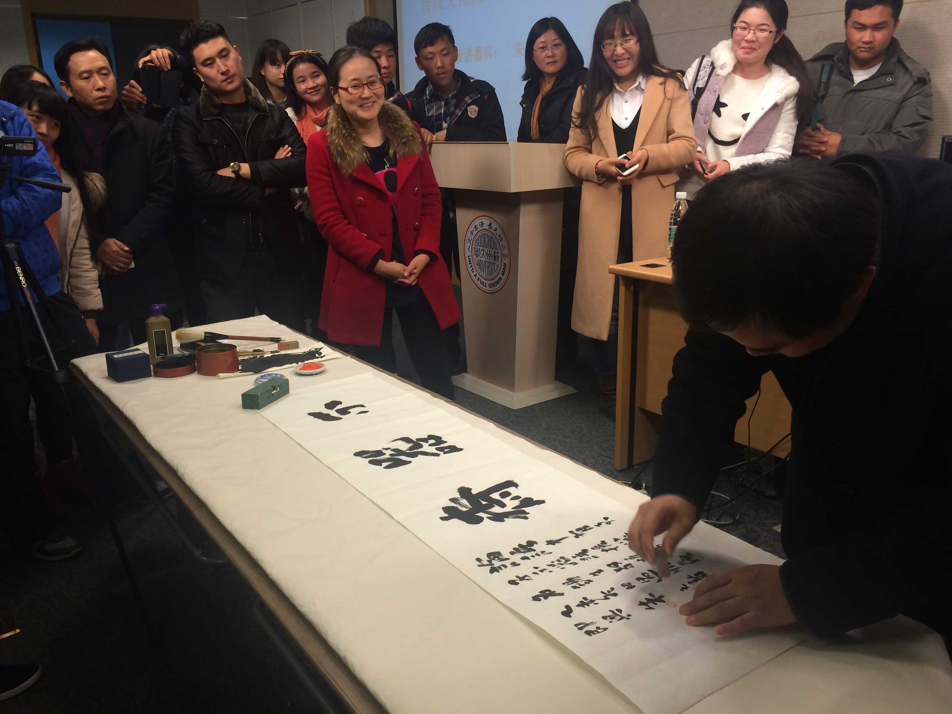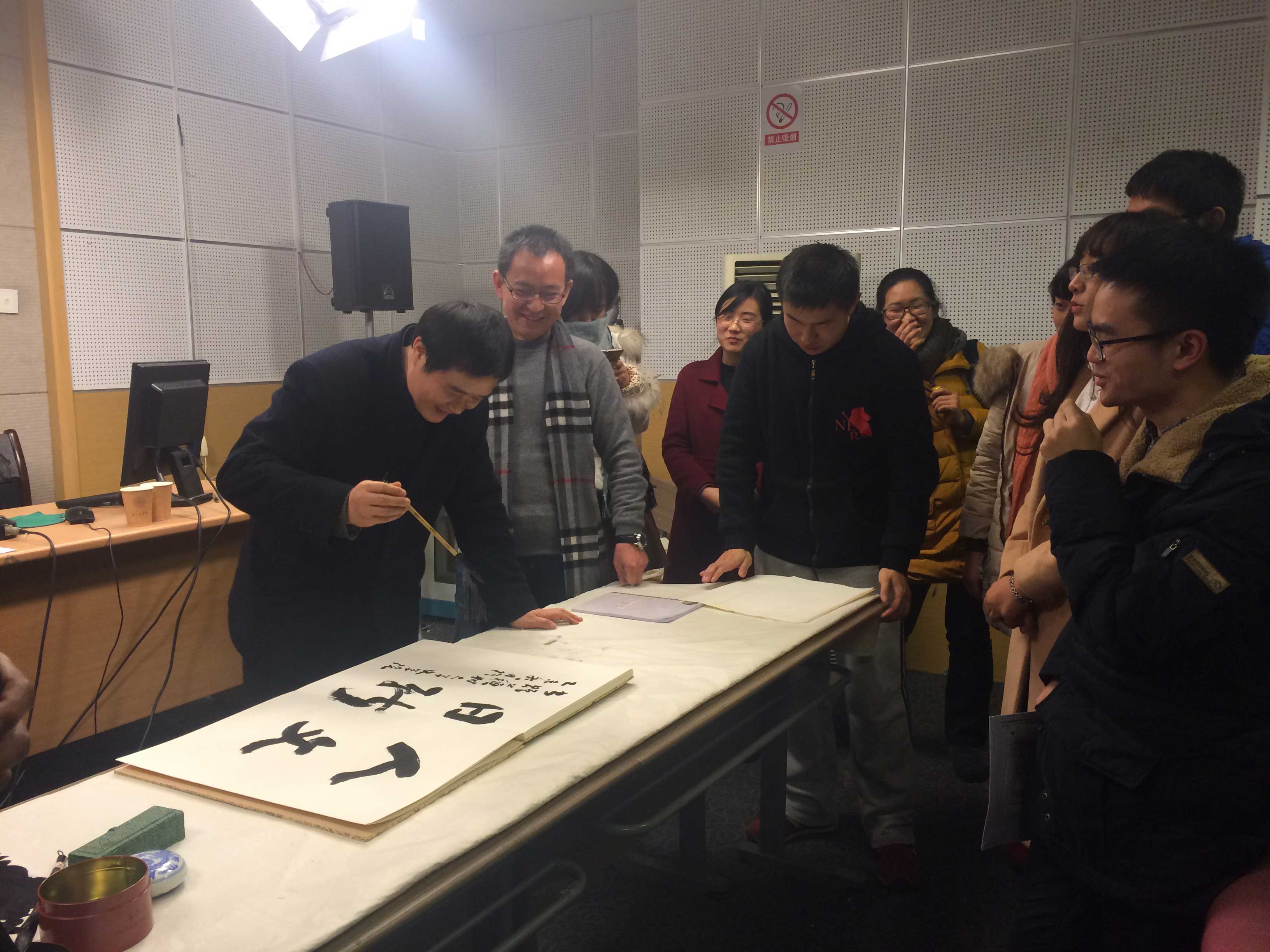 20151218晚上18时,唐文治书院系列讲座之二十二在苏州大学独墅湖校区文综楼1005-5339举行。本次讲座有幸请到了北京语言大学教授、中国书法篆刻研究所所长、中国书法家协会理事朱天曙老师前来演讲“传统文化视野下的中国书法”。出席本次活动的人有苏州大学唐文治书院常务院长季进老师,文学院教授钱锡生老师,唐文治书院行政秘书胡月华以及唐文治书院全体学生。