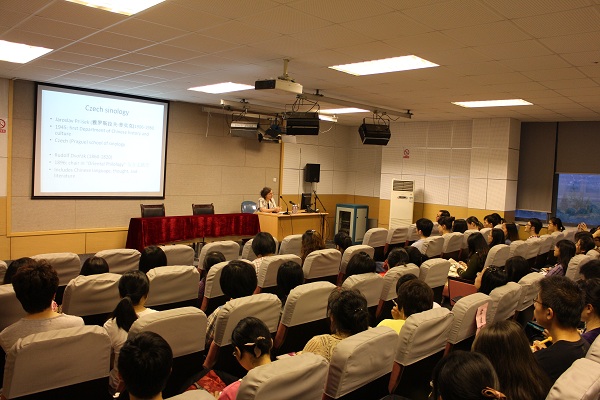 在此次讲座中,罗然(Olga Lomová)教授先对雅罗斯拉夫·普实克等优秀汉学家做了简要介绍,然后由鲁道夫·德沃夏克的生平引入此次讲座的主题。对鲁道夫·德沃夏克的研究成果进行了总结和分析,着重与同学们探讨了“东方语文学(Oriental Philology)”、“东方主义(Orientalism)”和“宗教与哲学”等问题,深入浅出地让同学们了解了鲁道夫·德沃夏克对东方文化的研究,并通过这一个案,让同学们更好地认识到海外汉学的发展状况,思考中国文化异域传播过程中的一些重要理论问题。讲座过程中,同学们认真记录,积极思考,并与罗然(Olga Lomová)教授热烈互动,现场气氛和谐融洽。