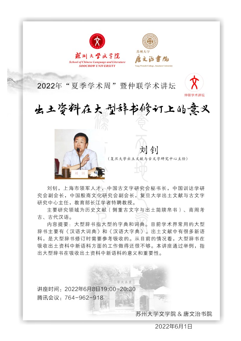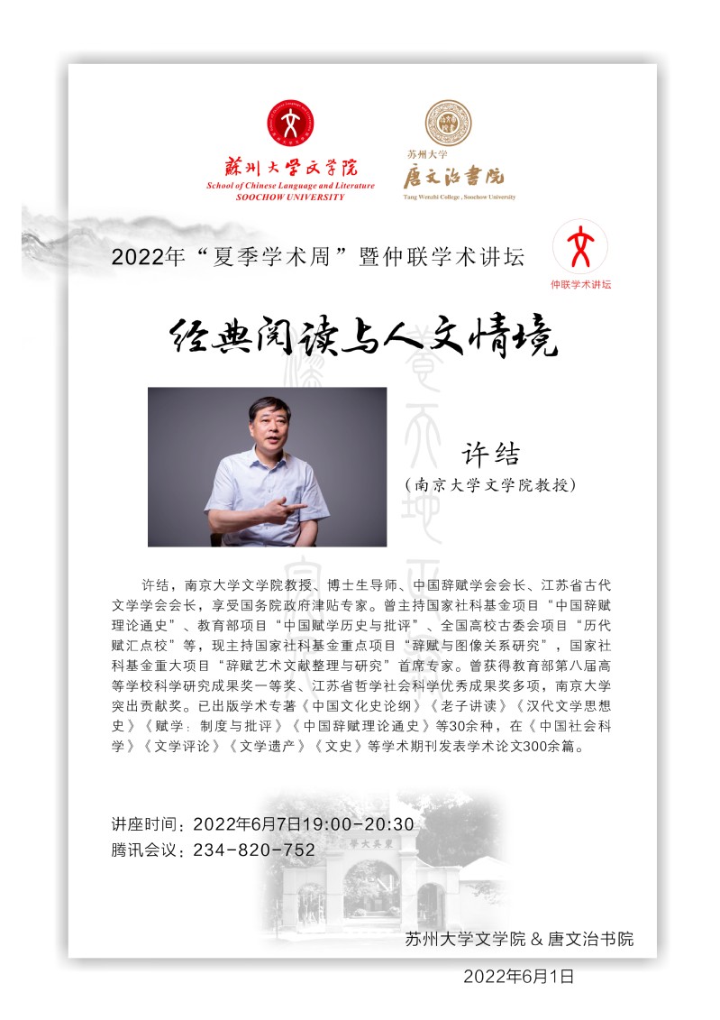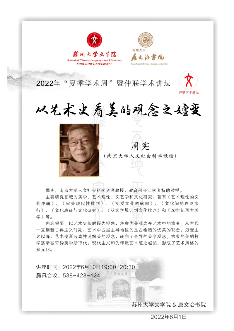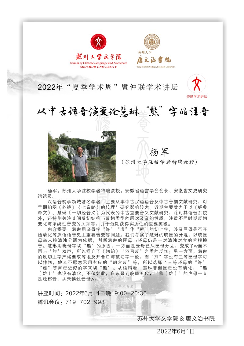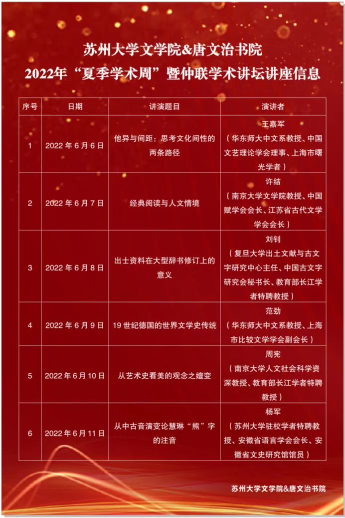 2022年“夏季学术周”暨仲联学术讲坛讲座信息