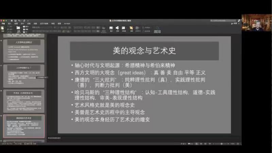 第五讲有幸邀请到南京大学的周宪教授。周宪教授系南京大学人文社会科学资深教授,教育部长江学者特聘教授。他的主要研究领域为美学、艺术理论、文艺学和文化研究,著有《艺术理论的文化逻辑》《审美现代性批判》和《20世纪西方美学》等。他讲座的题目是“从艺术史看美的观念之嬗变”。周宪教授以艺术史长时段为视角,依托艺术史上的古典主义和浪漫主义两个重要时段,分析了“美”的观念在艺术中的转变。正式开始之前,周宪教授阐明了人文学科与艺术史的基本概念,提出了美的观念以及一些美的哲学化思考,从而正式引入艺术史,以呈现美的观念之嬗变。讲座的第一部分,周宪教授说明了从古代到新古典主义时期,古希腊的美的观念在艺术中占主导地位。周宪教授引用希腊哲学中美的观念,指出古希腊美的观念对艺术史和美学阐释的奠基作用,并由此引出艺术史的考察方法和意义,强调艺术史是积累性的。在介绍艺术史第二个时段时,周宪教授引入了雅各布森的“主导”的概念,来区分古典艺术与现代艺术美的观念——前者注重美,后者注重奇异。在阐明两个时段的美的差异后,周宪教授深入浅出地介绍了浪漫主义出现以后的美的观念变化:艺术逐渐远离并消解美的观念,转向奇异美学的观念,使古典的美被边缘化,现代主义和先锋派艺术随之崛起,形成了艺术风格的多元化,使古典的美被终结,美逐渐由艺术领域移入商业领域。最后,周宪教授表达了对“美的人类学的危机”的担忧。
