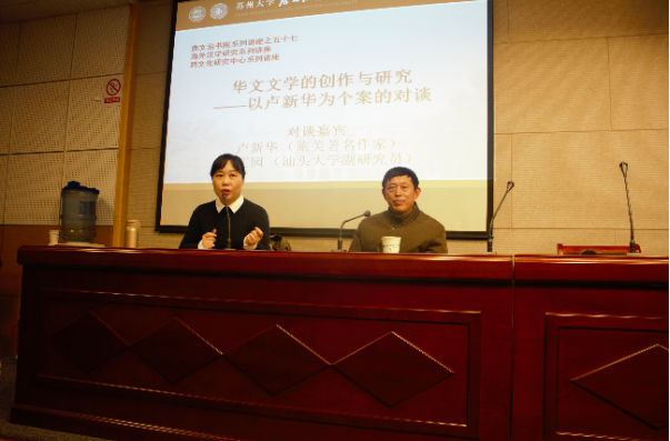 2018年12月26日,苏州大学唐文治书院有幸请到了著名旅美作家卢新华老师和汕头大学的庄园老师在苏州大学独墅湖校区1005-5339教室为我们带来了讲座“华文文学的创作与研究—以卢新华为个案的对谈”。