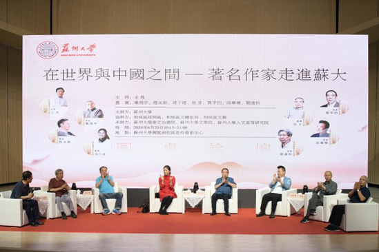 6月20日晚七点,由苏州大学主办,苏州大学唐文治书院、苏州大学文学院、苏州大学人文高等研究院承办的“在世界与中国之间——著名作家走进苏大”圆桌论坛在独墅湖校区恩玲艺术中心顺利举办。毕飞宇、程永新、迟子建、格非、贾平凹、邱华栋和阎连科诸位中国现代著名作家走进苏州大学,为同学们带来题为“在世界与中国之间”的圆桌论坛,本次论坛旨在发挥大师引领作用,培养苏大学子的人文情怀与世界眼光。王尧老师担任本次论坛的主持人。