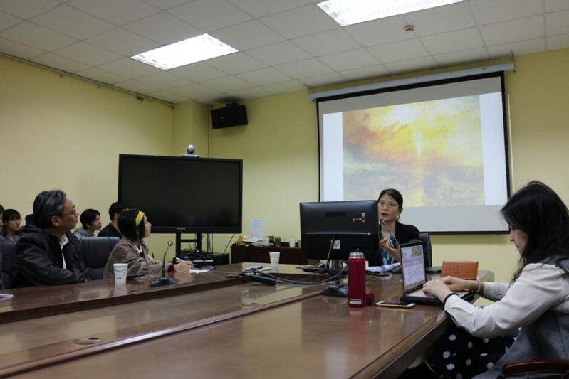 在1005的5335室,同学们层层围着长桌,安静地听着,高瑾老师温柔的声音在这小小的会议室显得格外响亮。高老师从罗斯金的本本著作谈起,从《现代画家》、《芝麻与百合》谈到《留给这个后来者》。尽管同学们对这些名字都略感迷茫,但通过老师细致、全面的介绍,大家渐渐地对罗斯金这位“美的使者”的思想有了初步的了解。