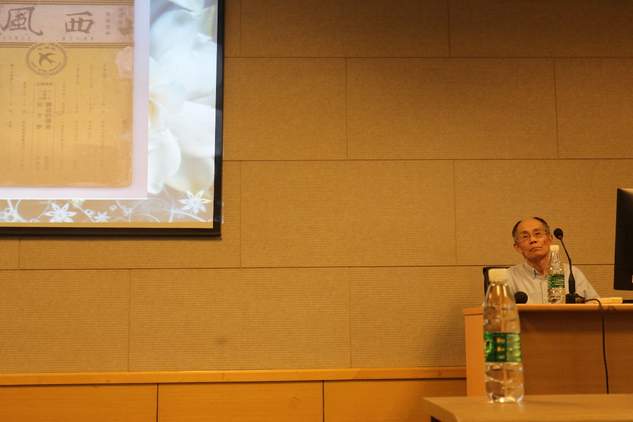 陈教授在讲座的开始随机应变,用自己所带的张爱玲各种作品版本的图片,为大家展示了考究各种版本的重要意义。陈教授首先举了30年代末到40年代初《西风》杂志的例子,由一次征文活动,引出了张爱玲早期的作品《我的天才梦》,也从《西风》杂志上找到了张爱玲此篇文章的最初版本。